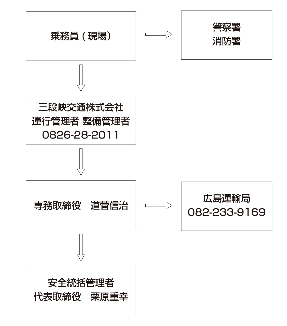 輸送の安全に関する情報伝達体制及び、事故災害が発生した場合の報告連絡体制について定めています。